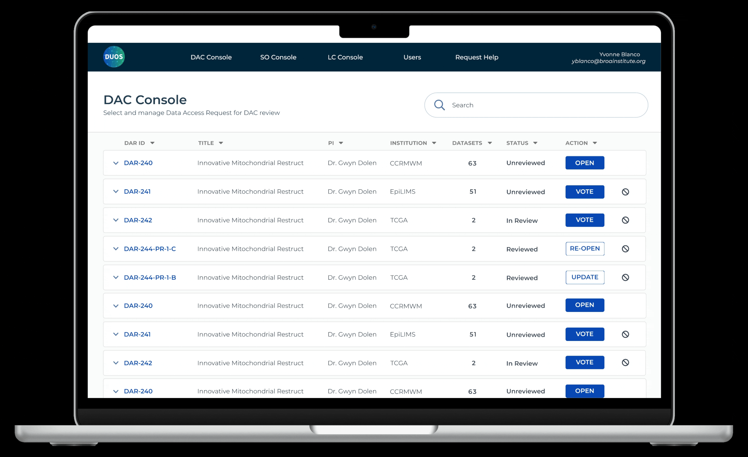 The gif on the right walks you through the refractive navigation and collapsible Data Access Request console. On the left, we have the preliminary organization for datasets, along with a few iterations before landing on the final design. Prior to this redesign, datasets would appear as single entities, rather than grouped by DAR ID, so our DACs would have to navigate hundreds of individual datasets! Built with Sketch and Figma.